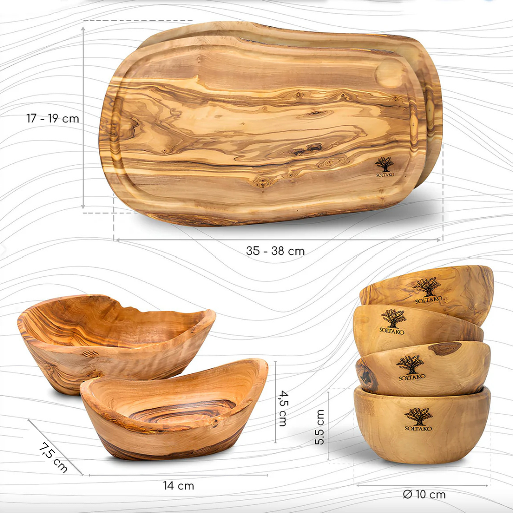 Die Maserung von Olivenholzbrettern kann sehr unterschiedlich sein und ist oft von Natur aus sehr dekorativ. Die Maserung wird durch das Wachstum der Olivenbäume und die natürlichen Umstände geprägt, unter denen sie gewachsen sind. Dadurch kann die Maserung sehr unregelmäßig und einzigartig sein. Jedes einzelne Teil ist somit ein Unikat.